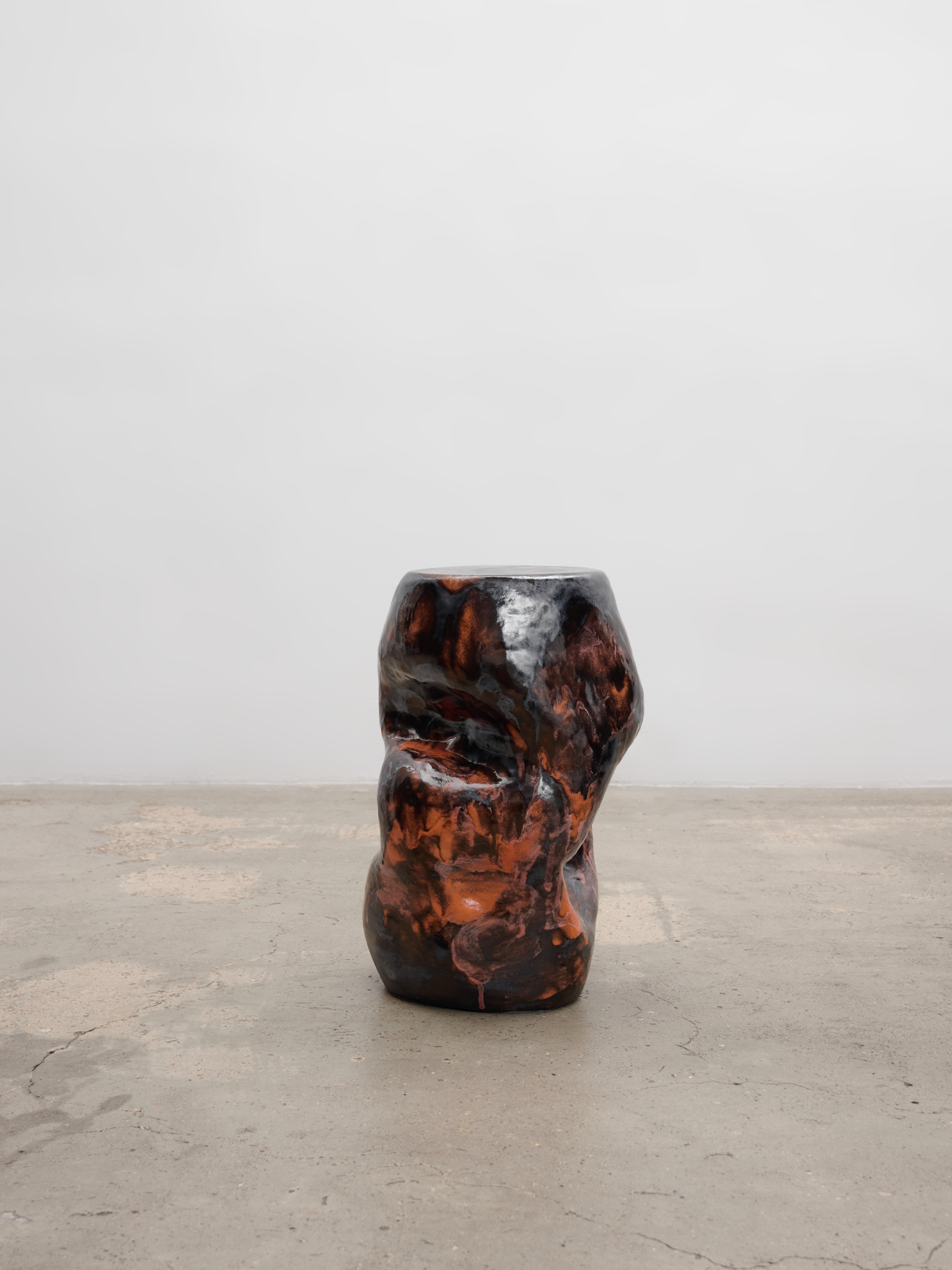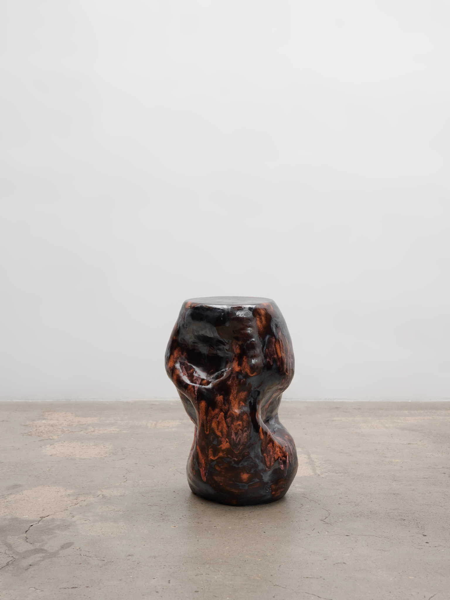 THE COLLECTION: "DARK WATER"THIS BESPOKE COLLECTION OF CERAMIC OBJECTS, CREATED FOR MARCELL PUSTUL, IS AN EXPLORATION OF THE SEA'S SERENE ATMOSPHERE AND GENTLE GLOW. EACH UNIQUE PIECE IS HAND-SCULPTED FROM CLAY INTO WAVELIKE FORMS AND FINISHED WITH A CUSTOM GLAZE COMBINATION THAT STUDIES THE LIGHT AND ITS SUBTLE SHIFTS OF COLOR THAT APPEAR ON THE WATER'S SURFACE AS THE DAY FADES INTO NIGHT. DESIGNED AS A FUNCTIONAL SCULPTURE, EACH PIECE EVOKES A SENSE OF CALM AND REFLECTION, AND CAN SERVE AS ADDITIONAL SEATING, A UNIQUE SIDE TABLE, OR A STRIKING SCULPTURAL ACCENT.