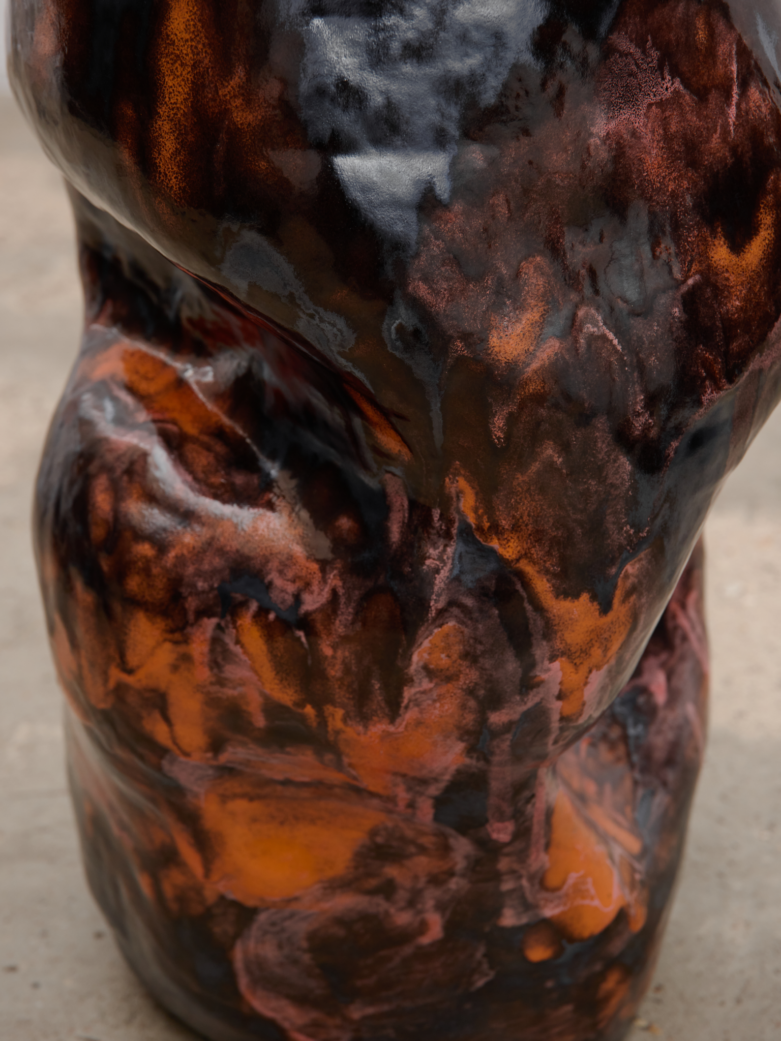 HAND-SHAPED FROM CLAY AND PAINTED WITH A BRUSH, THIS TALL CERAMIC ACCENT TABLE IS FINISHED WITH SPECIALLY MIXED GLAZES. IT FEATURES A DOMINANT DARK SILVER TONE INTRICATELY BLENDED WITH SHADES OF WARM ORANGE AND DELICATE PINK.HANDCRAFTED IN POLAND DIMENSION: 52 CM HEIGHT x 36 CM WIDTH