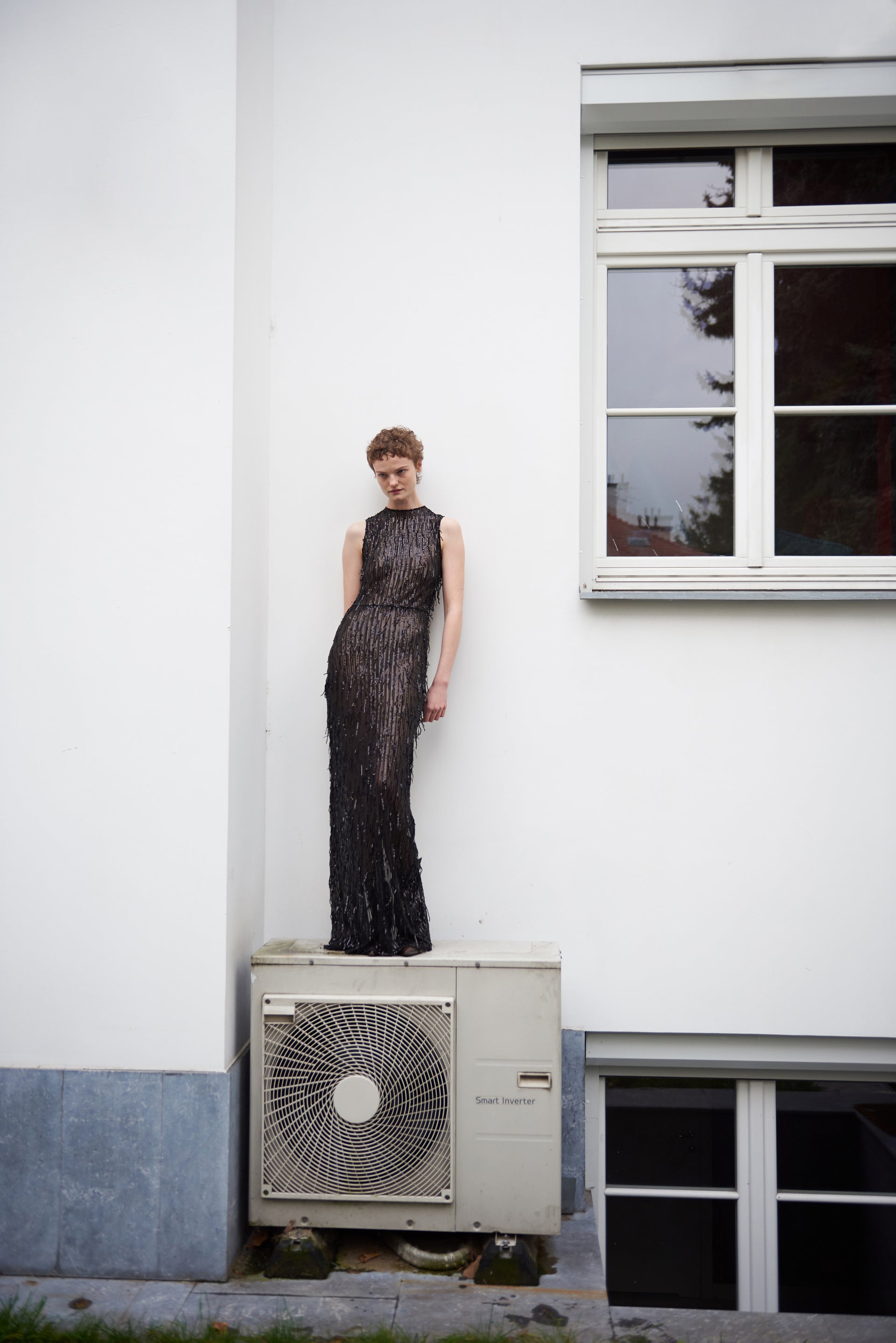 A full-length bodycon dress with a high neck and a sleek, minimal silhouette. Crafted from a soft, stretchy knit infused with a touch of cashmere, the fabric offers both comfort and refined luxury. The sleeveless cut and figure-hugging shape follow the natural lines of the body, creating an elegant, elongated profile.
