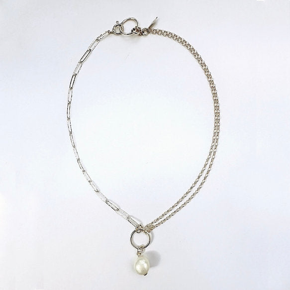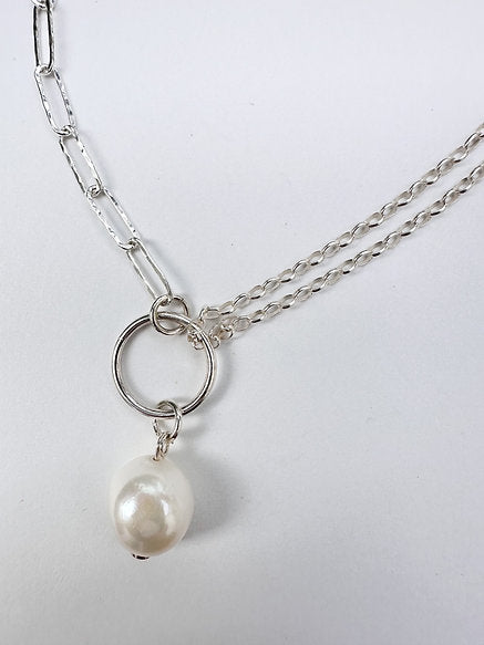 PRODUCT DESCRIPTIONThe Pearly Aaliyah Necklace is designed to shift with you effortlessly transitioning from everyday wear to an elegant evening piece. A modular construction allows multiple styling possibilities: worn as a mixed-chain necklace, as a long chain with a natural cultured pearl pendant, or separated into a bracelet and a standalone silver chain. One design, many expressions.
